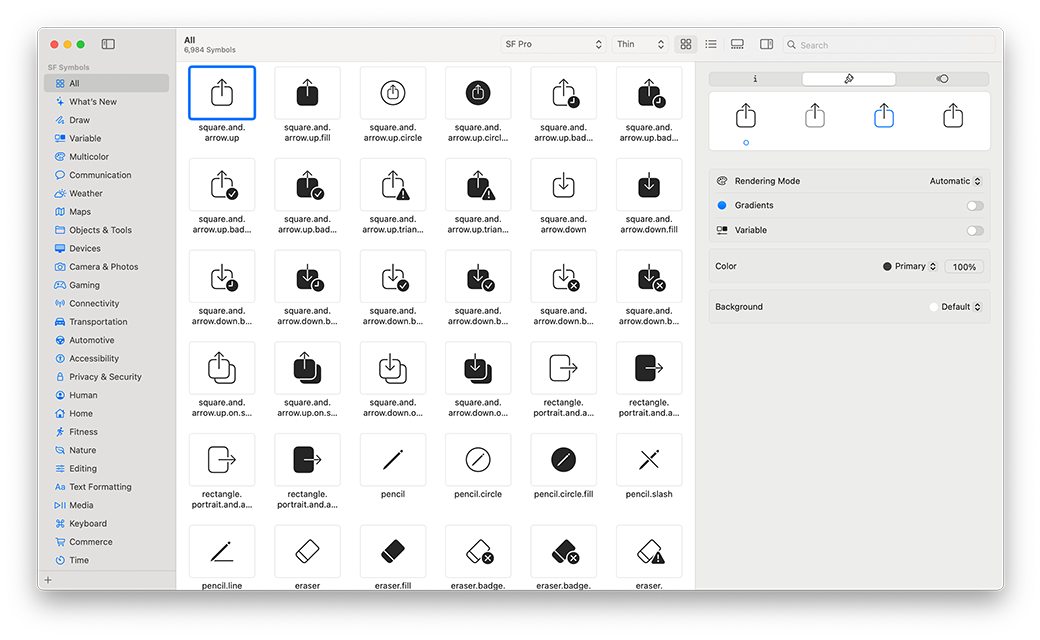SF Symbols 7 是拥有 6,900 多个符号的图标资料库,可与 Apple 平台的系统字体 San Francisco 无缝整合。其中的符号包含九种粗细和三种大小,可自动与文本对齐。你可以将它们导出并使用矢量图形工具进行编辑,创建具有共享设计特征和辅助功能的自定符号。SF Symbols 7 推出了 Draw 动画和可变渲染、增强版魔术替换、渐变效果以及数百个新符号。