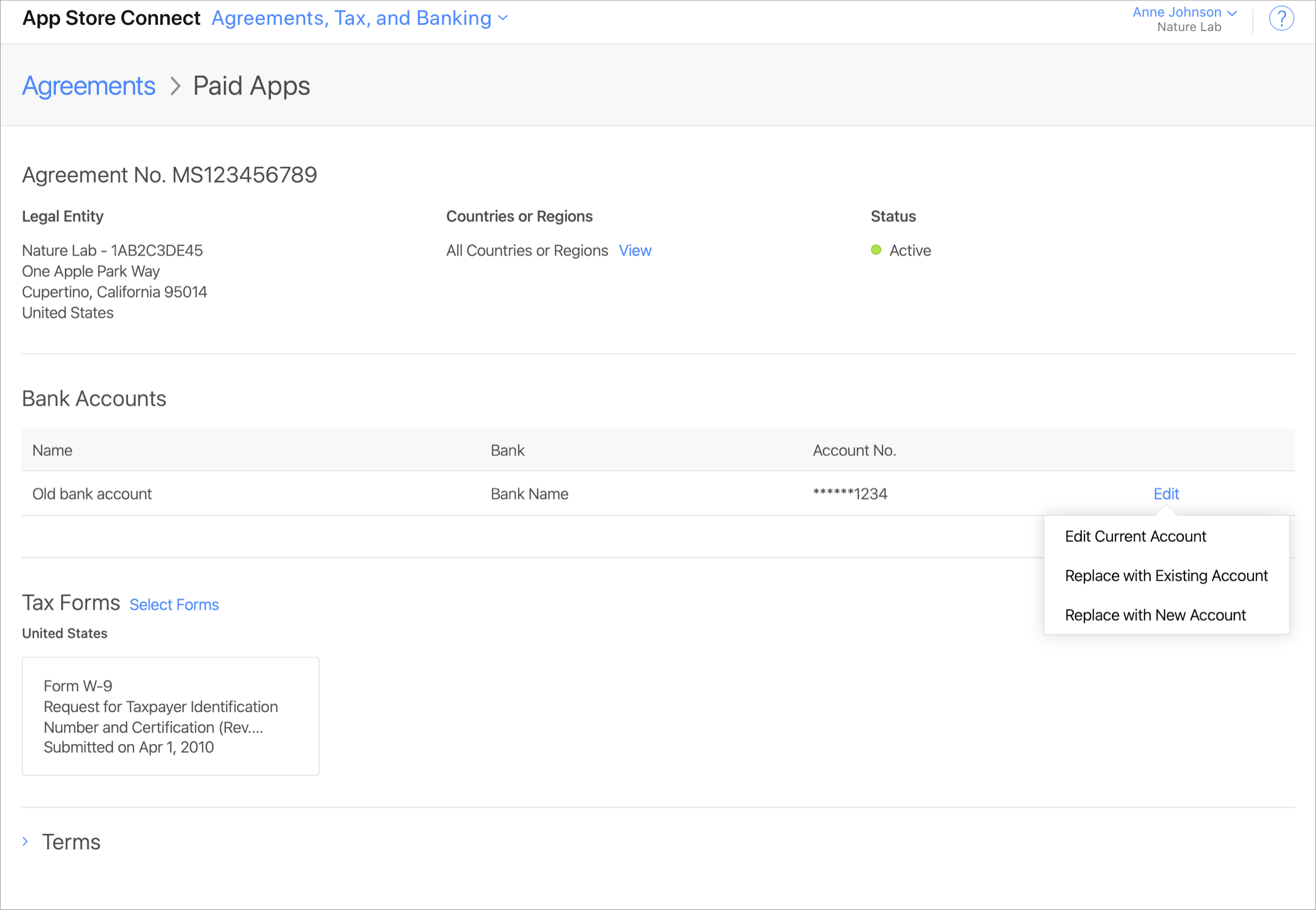 If you’re the Account Holder for a team with multiple App Store Connect users, you'll need to approve the following banking information changes before they’re processed: