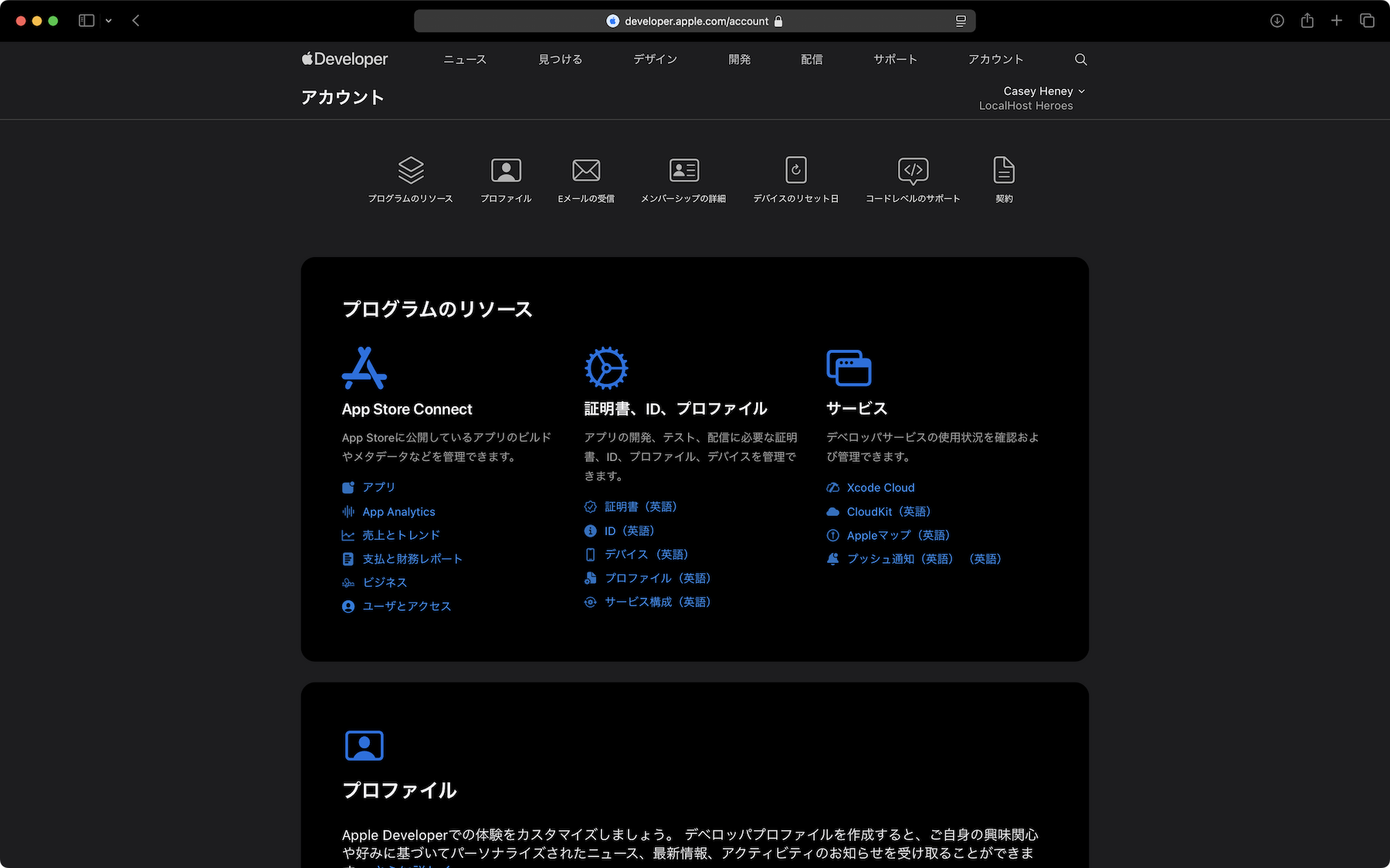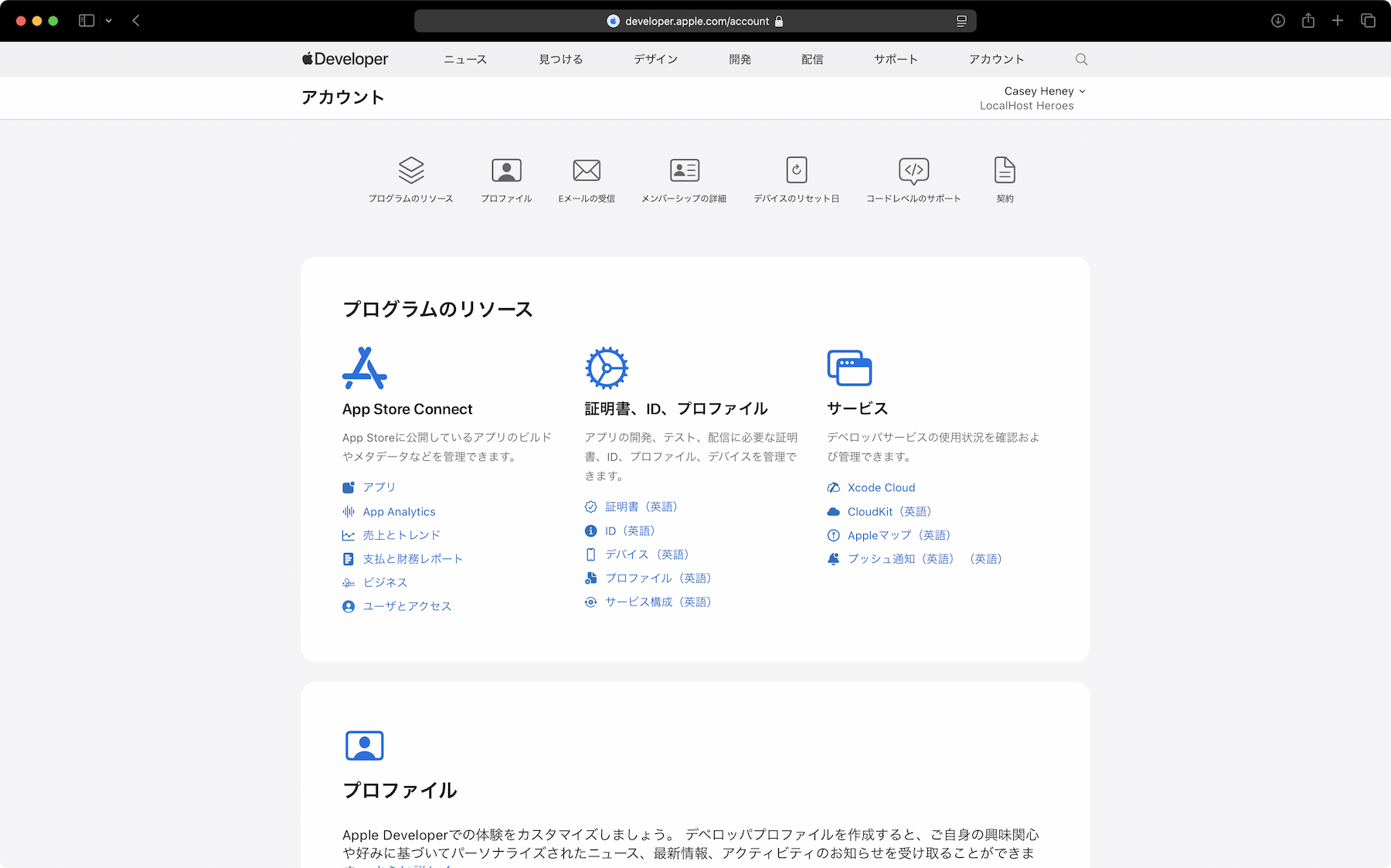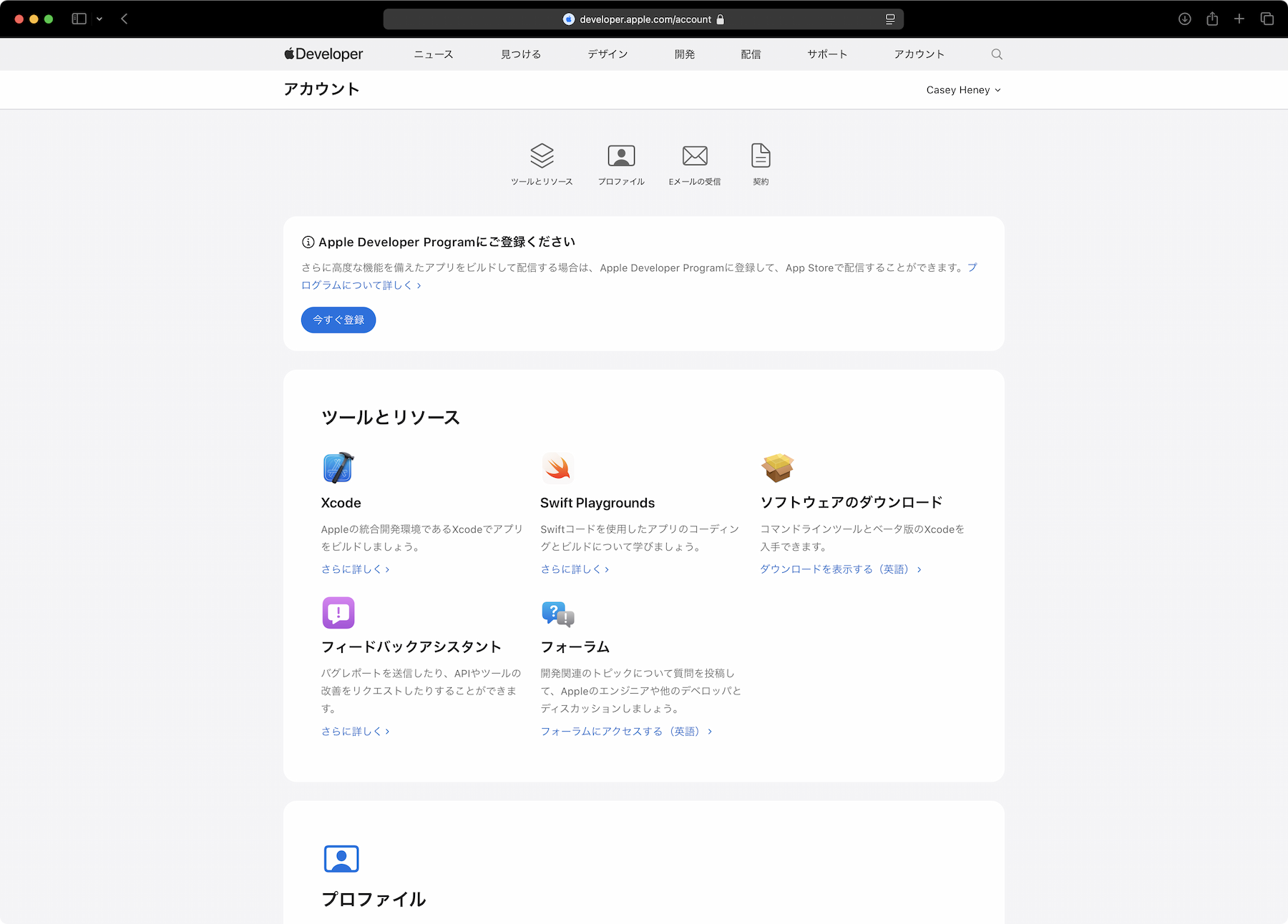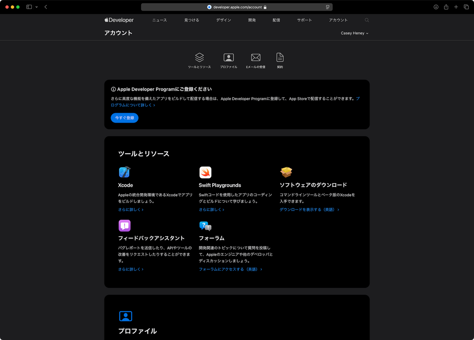 デベロッパプロファイルを作成し、ご自身の興味関心や好みなどをAppleと共有することで、より関連性のあるコンテンツやEメールのお知らせを受け取ることができます。