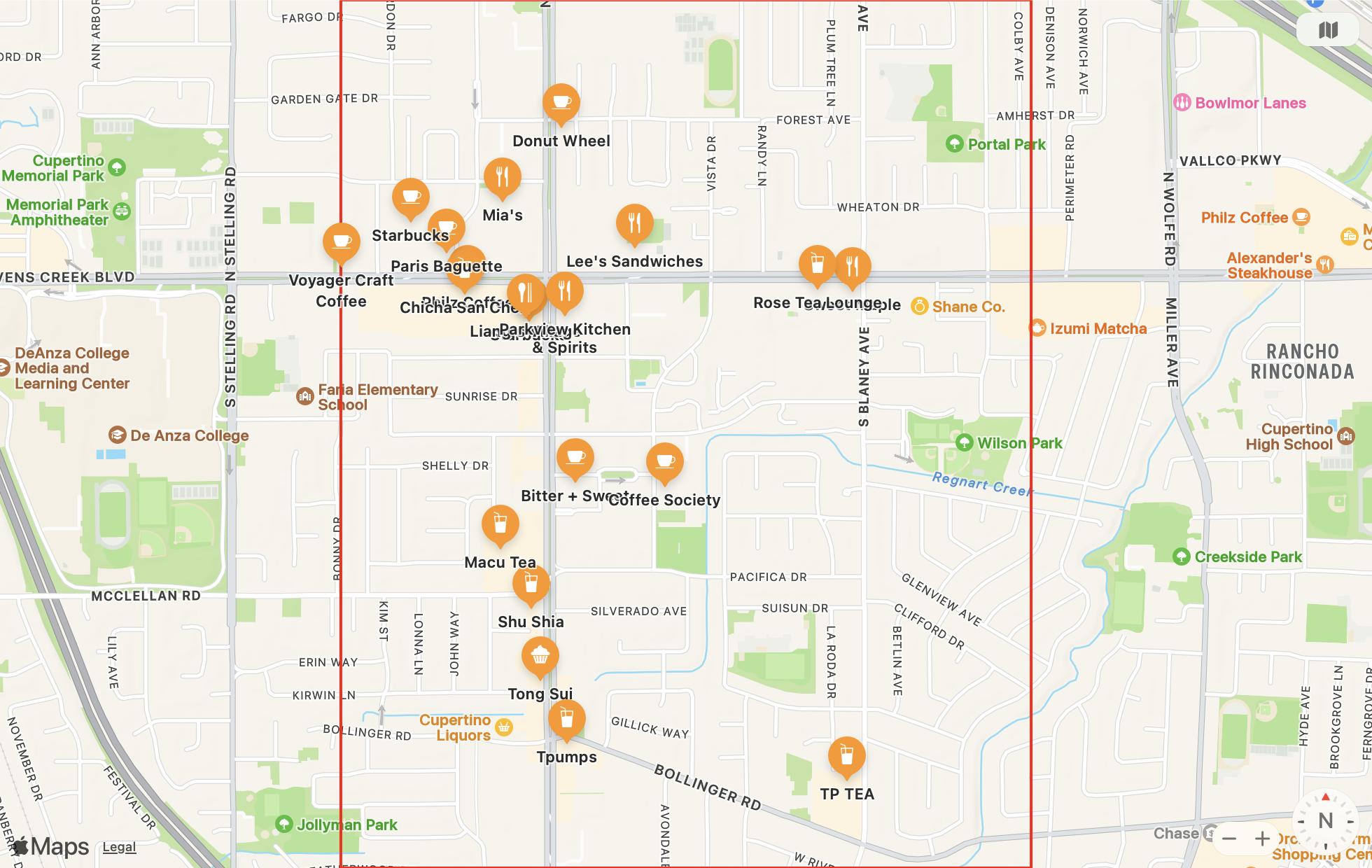 Reverse Geocoding APIを使って場所データを検索し、注釈を追加および削除します。