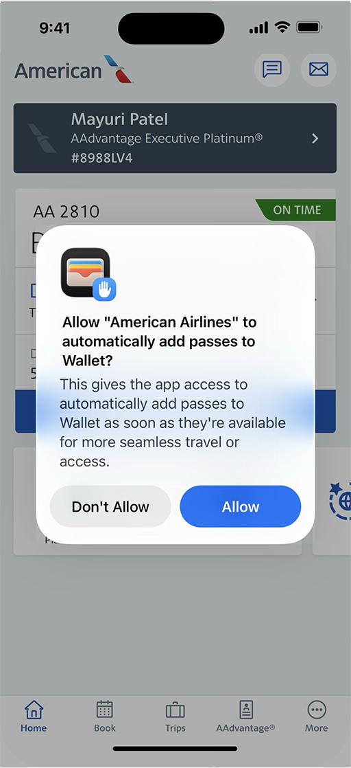 ウォレットでは、ライブアクティビティでタイムリーな更新情報を表示し、フライト状況を友人や家族とシームレスに共有でき、カスタマーはフライトを最大限に楽しめます。