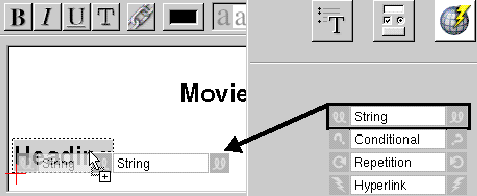 - Drag a heading element from the Static Elements palette into the MovieDetails component window.