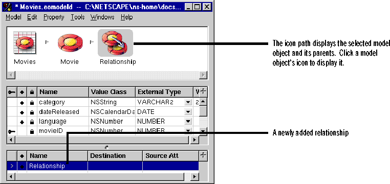 - In EOModeler, double-click the open entity icon for the Movie entity.