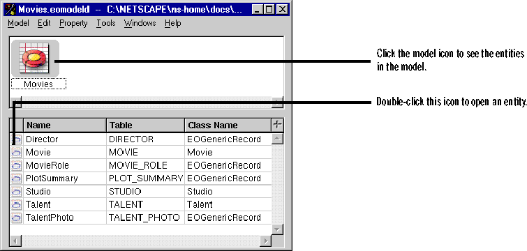 - In EOModeler, double-click the open entity icon for the Movie entity.