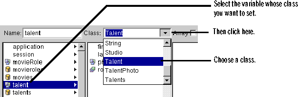 Strictly speaking, this step is unnecessary, but it makes it easier to see what's going on. Now when you select talent variable in the object browser, you can see that it has lastName and firstName attributes.