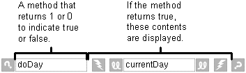 A WOConditional displays its contents only if a particular condition is true. WOConditional's main attribute is condition. If condition is 1 (true), the WOConditional's contents are displayed. If condition is 0, the contents aren't displayed. condition can be bound to a variable or to method that returns the 1 or 0 value. The values self or nil also work in place of 1 or 0.