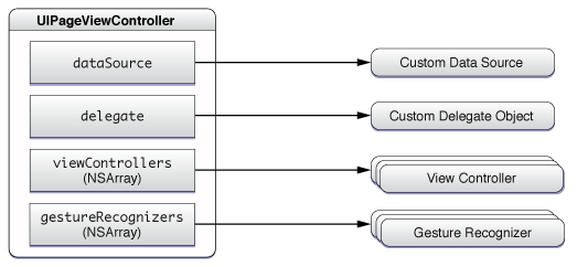 If a data source is supplied, the page view controller associates gesture recognizers to its view. These gesture recognizers let the user turn the pages by tapping, flicking, and dragging; they are accessible as the gestureRecognizers property.
